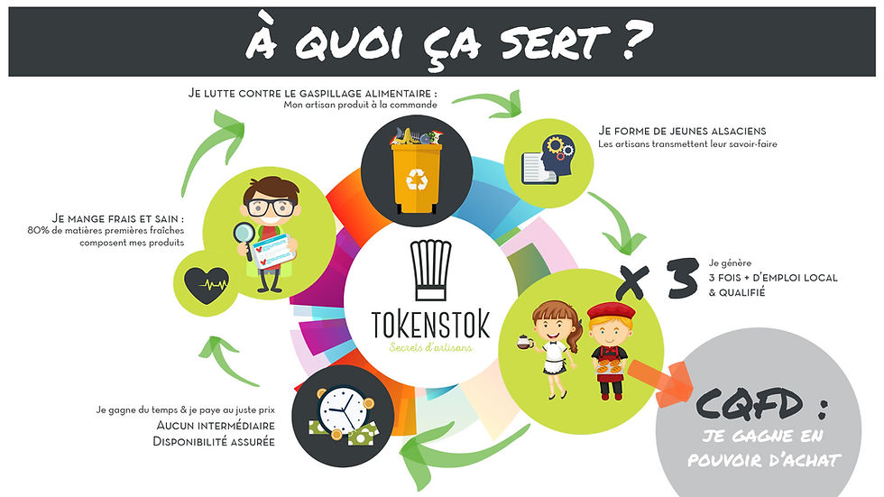 Un bouquin : des amis, des ennemis, des péripéties et une fin sensationnelle et en coup de théâtre. Diplôme de Communication, reconversion à 28 ans avec le CAP Pâtisserie, retour aux racines alsaciennes et création de Tokenstok avec 0 en poche mais une tenacité et un rêve à accomplir.